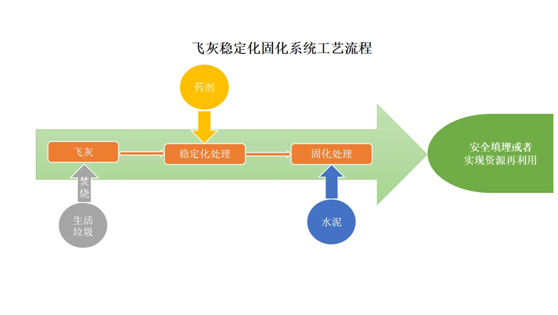 實(shí)現(xiàn)手段:“飛灰+螯合劑+水+水泥”進(jìn)行混合攪拌,根據(jù)項(xiàng)目特點(diǎn)設(shè)定具體的配比值和附加工藝,可設(shè)置多條生產(chǎn)線組合的生產(chǎn)工藝,以滿足飛灰產(chǎn)生量比較大的項(xiàng)目。